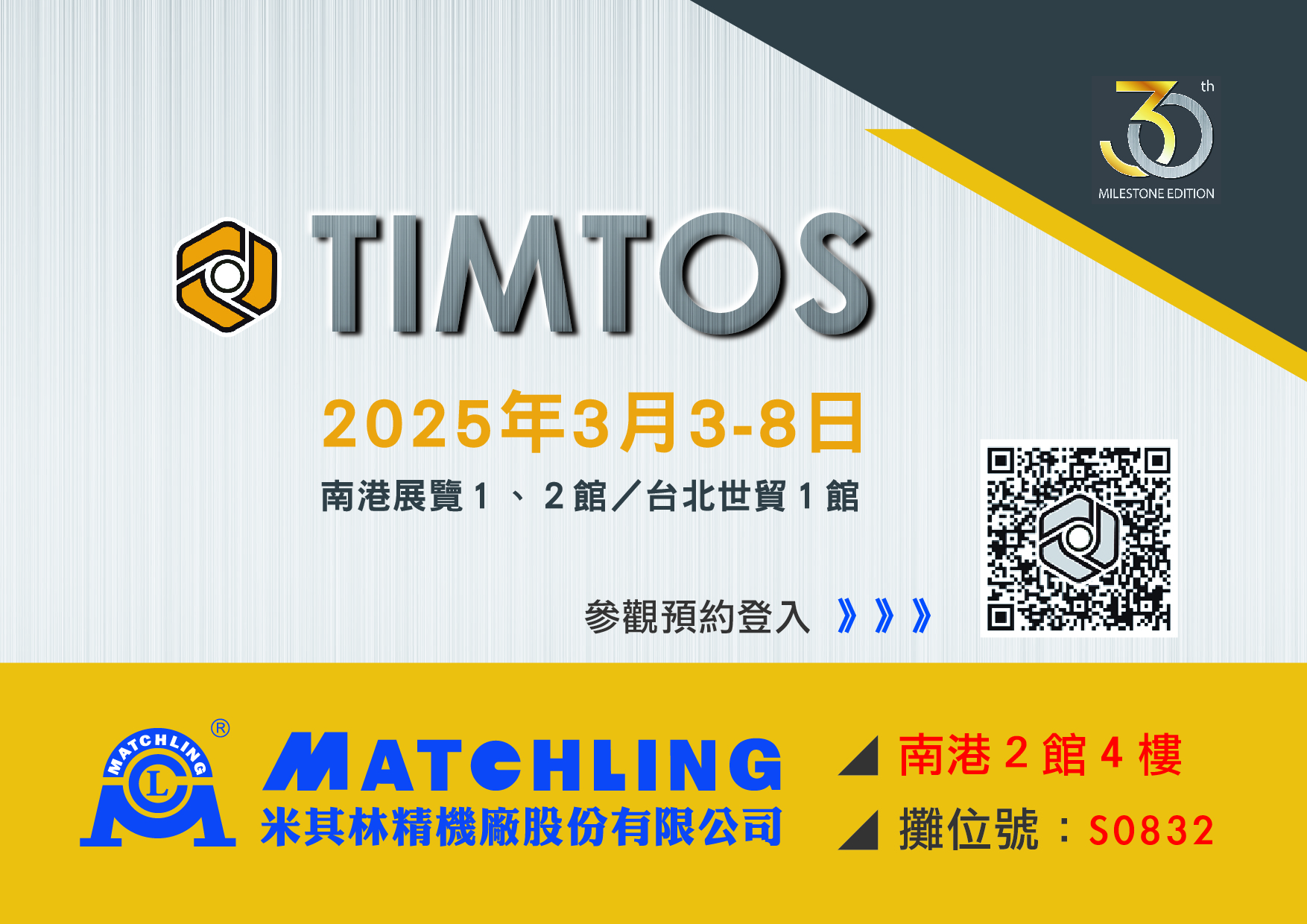 ♦♦♦ 台北國際工具機展 即將登場 ♦♦♦ 2025 TIMTOS工具機展,我們誠摯邀請您在展會期間蒞臨參觀,共襄盛舉。 展期:3/3(ㄧ) ~ 3/8(六) 時間:10:00~18:00 地點:南港展覽館二館4樓 攤位:S0832