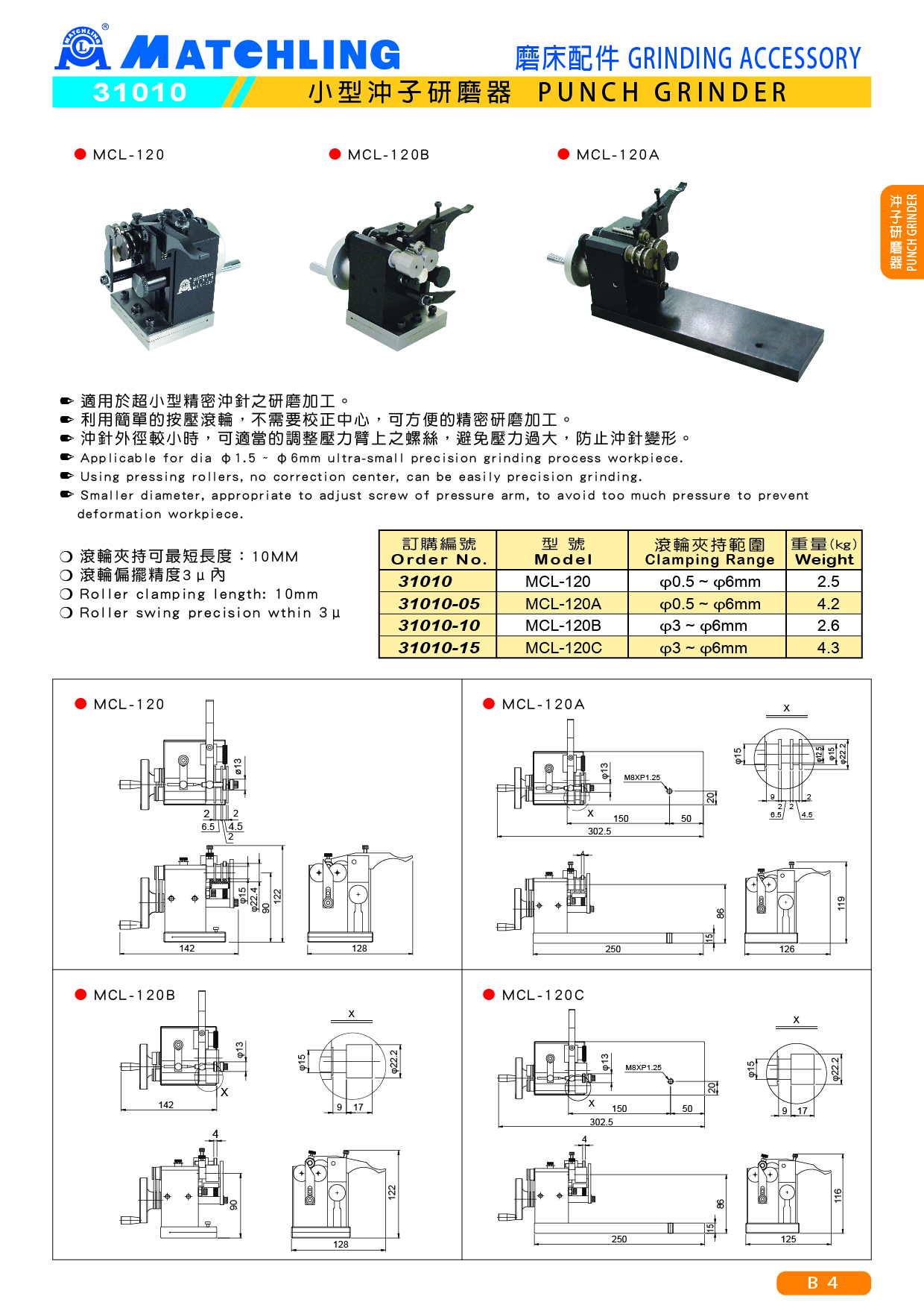 | 31010 | MCL-120 | φ0.5 ~ φ6mm | 2.5 |