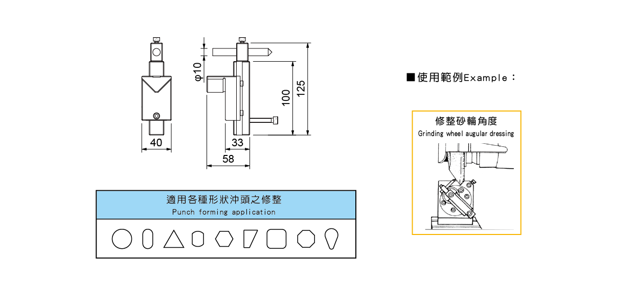 專為修整砂輪設計,搭配 MCL-350. MCL-450 一起使用,可將砂輪修整成所需形狀。