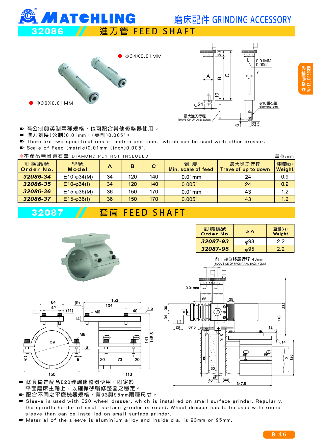 配合不同之平磨機器規格,有93與95mm兩種尺寸。