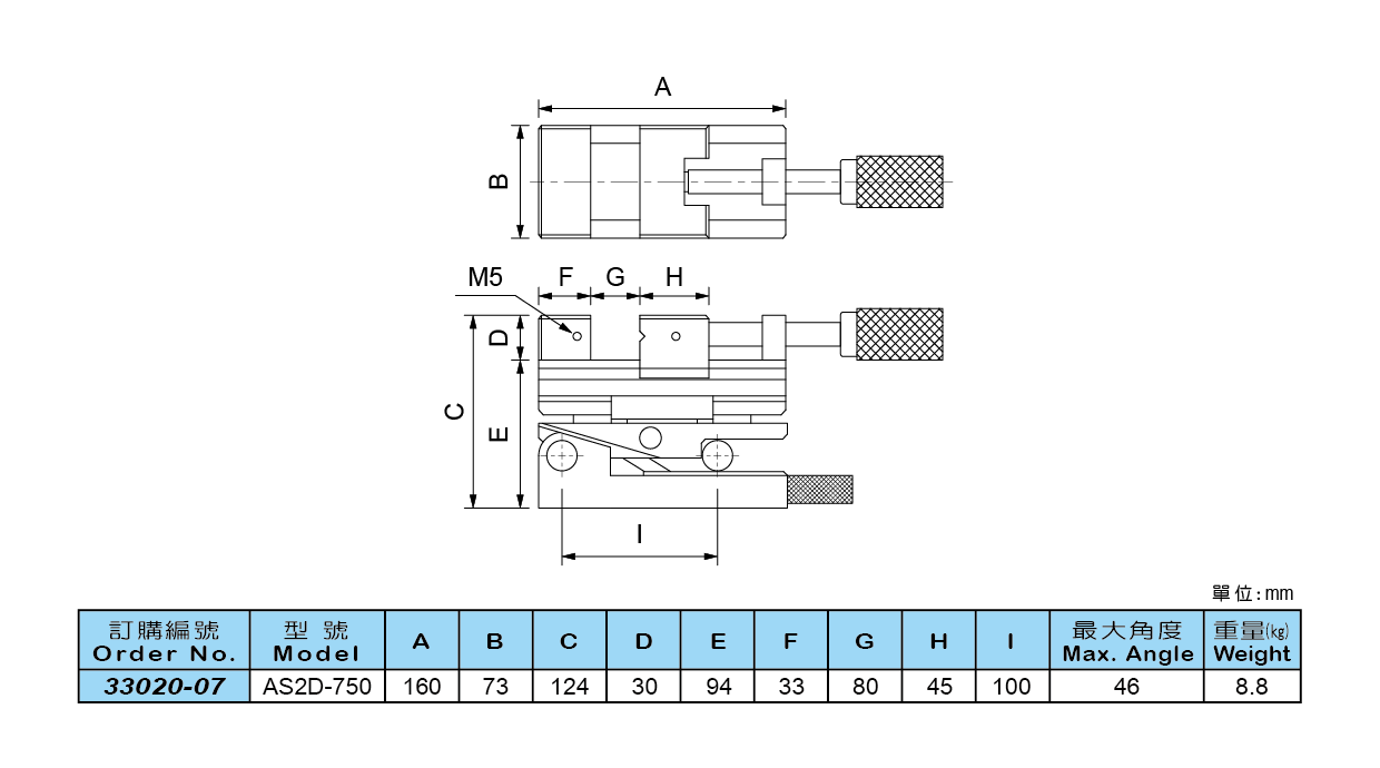 ● 微調正弦開口設計,操作簡易,精密度高且穩固。 ● 握把式旋轉,夾持方便,配合墊塊使用可調整至多種角度,作精密角度加工研磨。 ■ 規格: ● 材質:SKS ● 硬度:HRC58°~60° ● 深冷處理:-185°C ● 平行度:0.003mm內/100mm ● 垂直度:0.005mm內/100mm ● 角度誤差:20秒以內