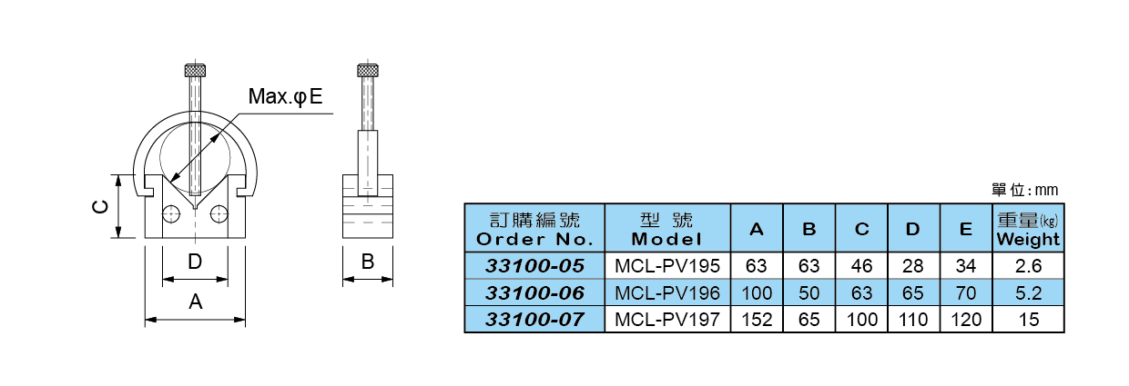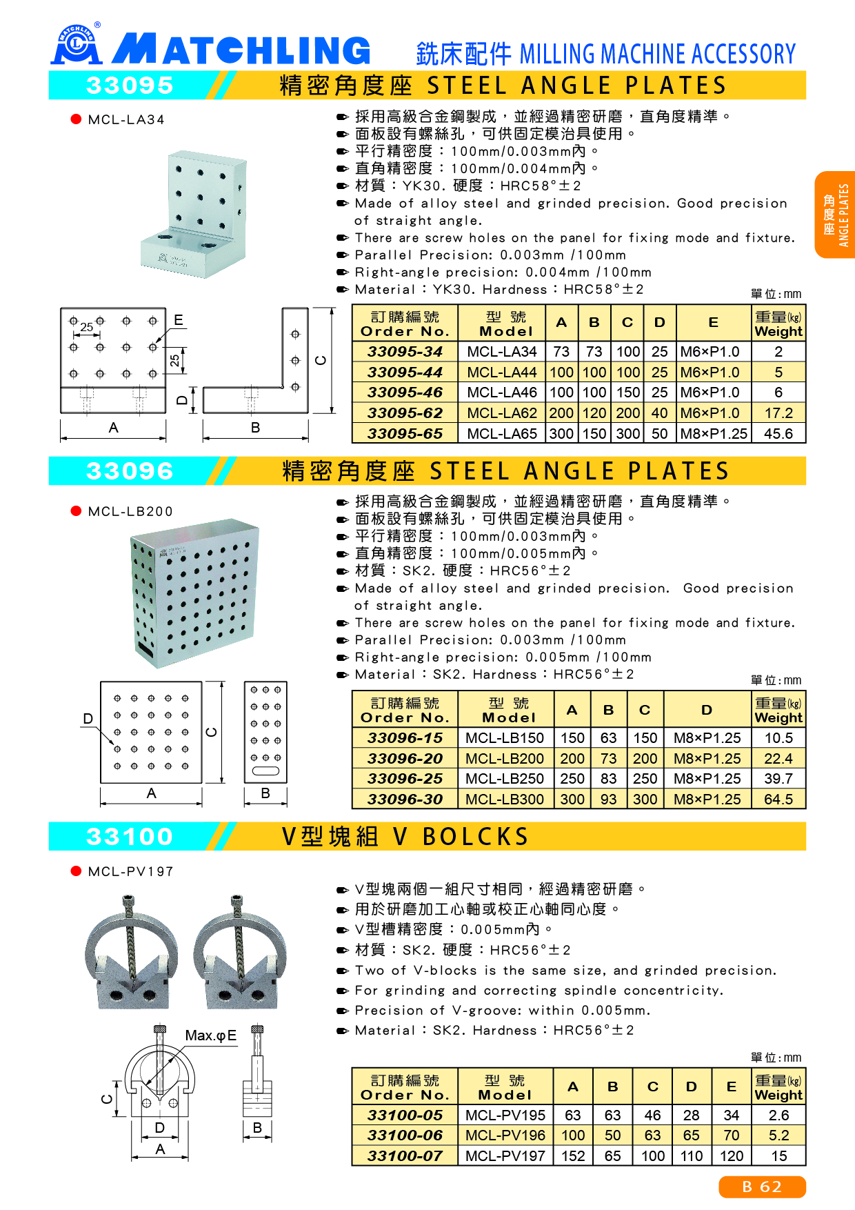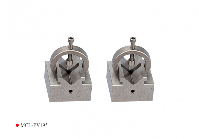 ● V型塊兩個一組尺寸相同,經過精密研磨。 ● 用於研磨加工心軸或校正心軸同心度。 ● V型槽精密度:0.005mm內。 ● 材質:SK2. 硬度:HRC56°±2 MCL-PV195 MCL-PV196 MCL-PV197