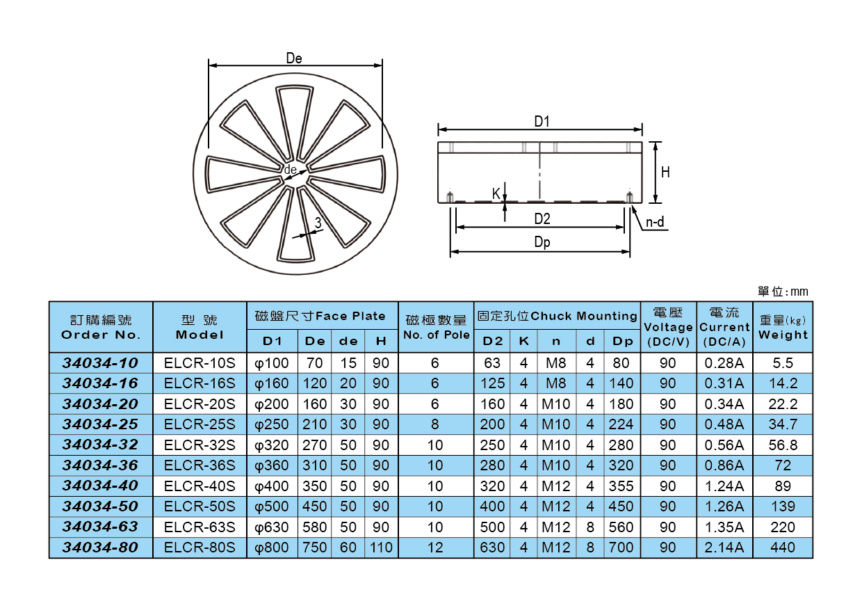 ● 適用車床、直立式車床、旋轉磨床等工作母機,研削及車削加工作業。 ● 吸力超強,針對厚的工件,能有效吸著。 ELCR-10S ELCR-16S ELCR-20S ELCR-25S ELCR-32S ELCR-36S ELCR-40S ELCR-50S ELCR-63S ELCR-80S