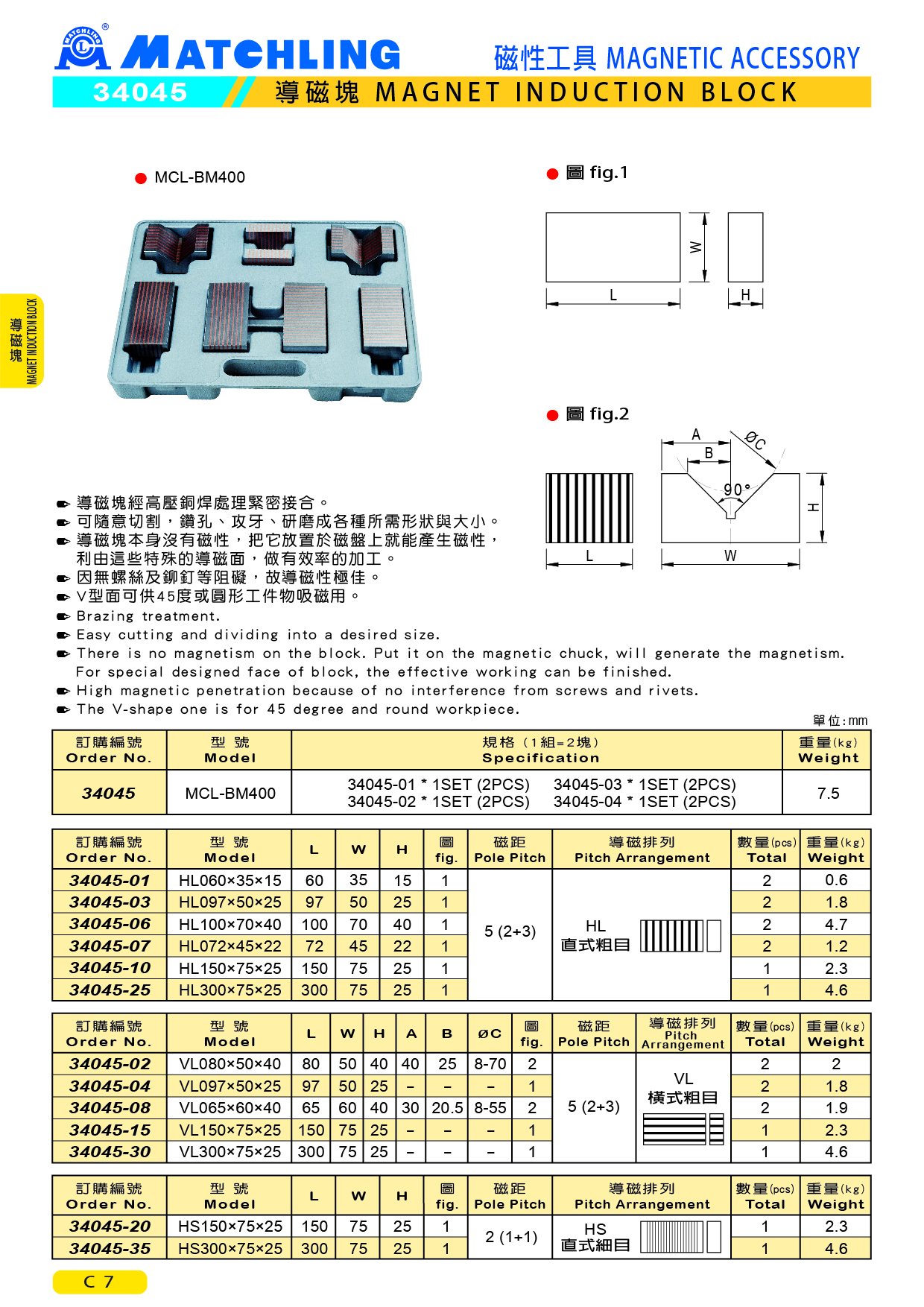 | 訂購編號 | 型號 | L | W | H | 圖 | 導磁排列/磁距 | 數量 (pcs) | 重量(kg) |