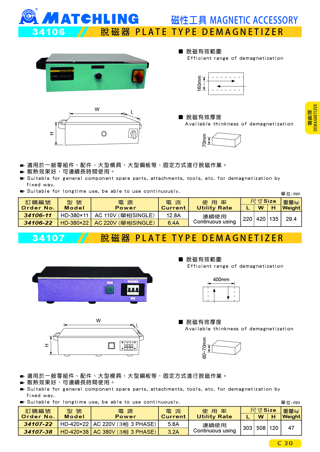 適用於一般零組件、配件、大型模具、大型鋼板等,固定方式進行脫磁作業。