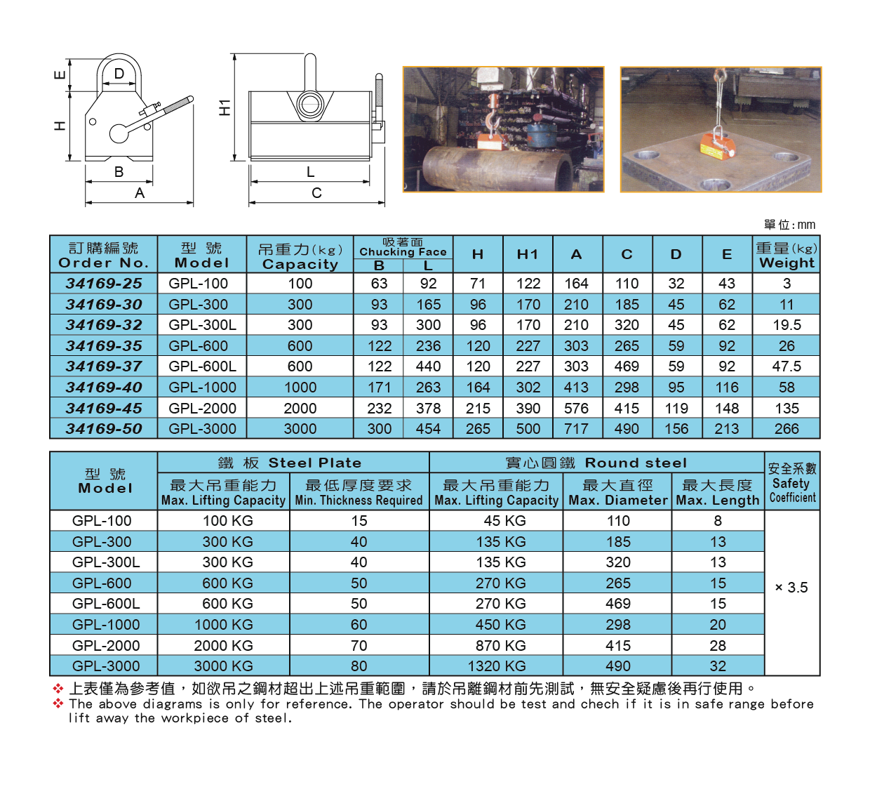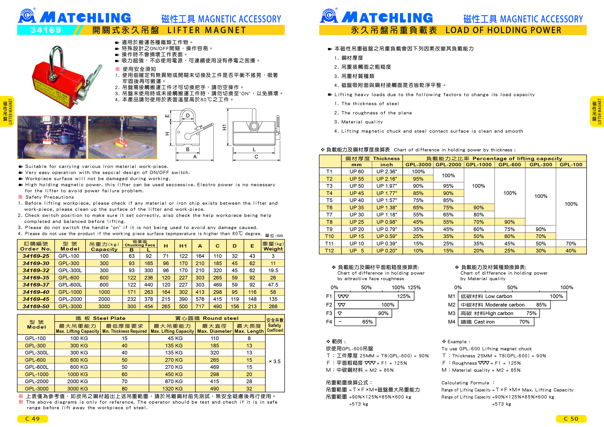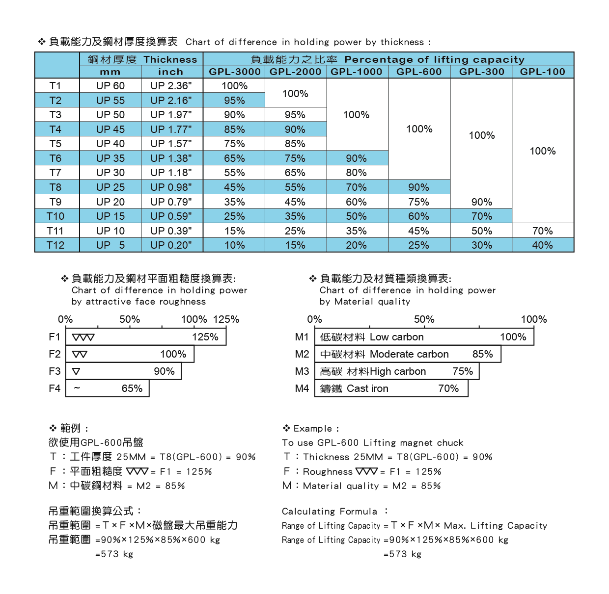 ※ 本磁性吊重磁盤之吊重負載會因下列因素改變其負載能力