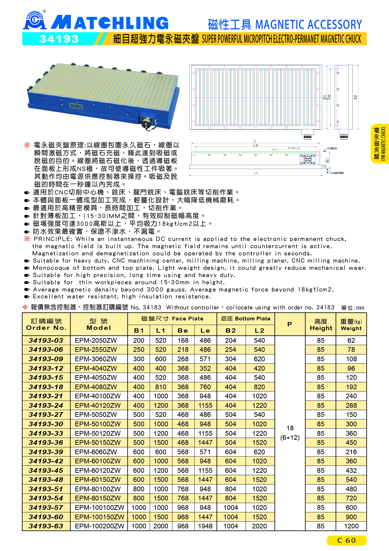 電永磁夾盤之特性 :