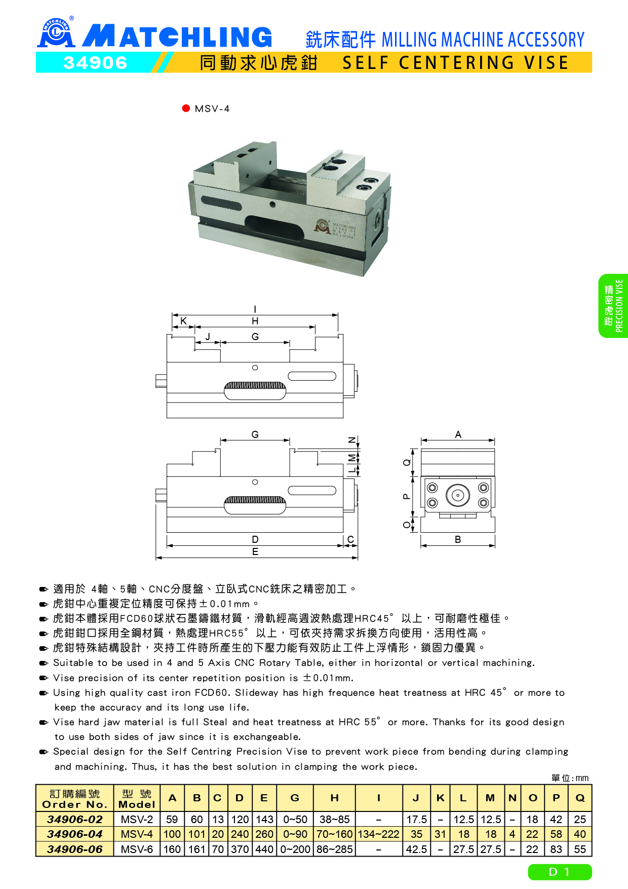 ● 虎鉗中心重複定位精度可保持±0.01mm。