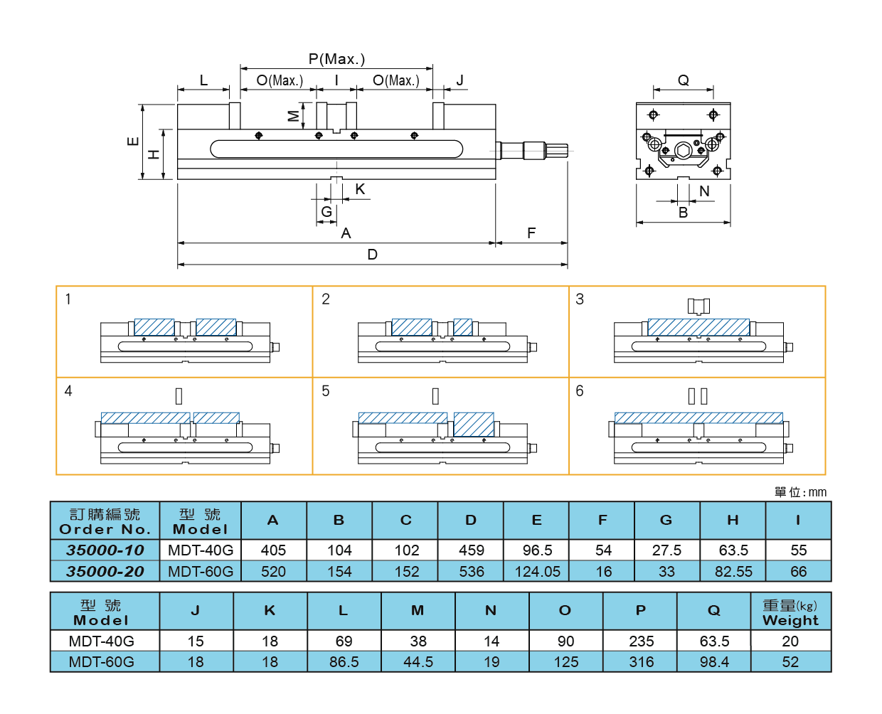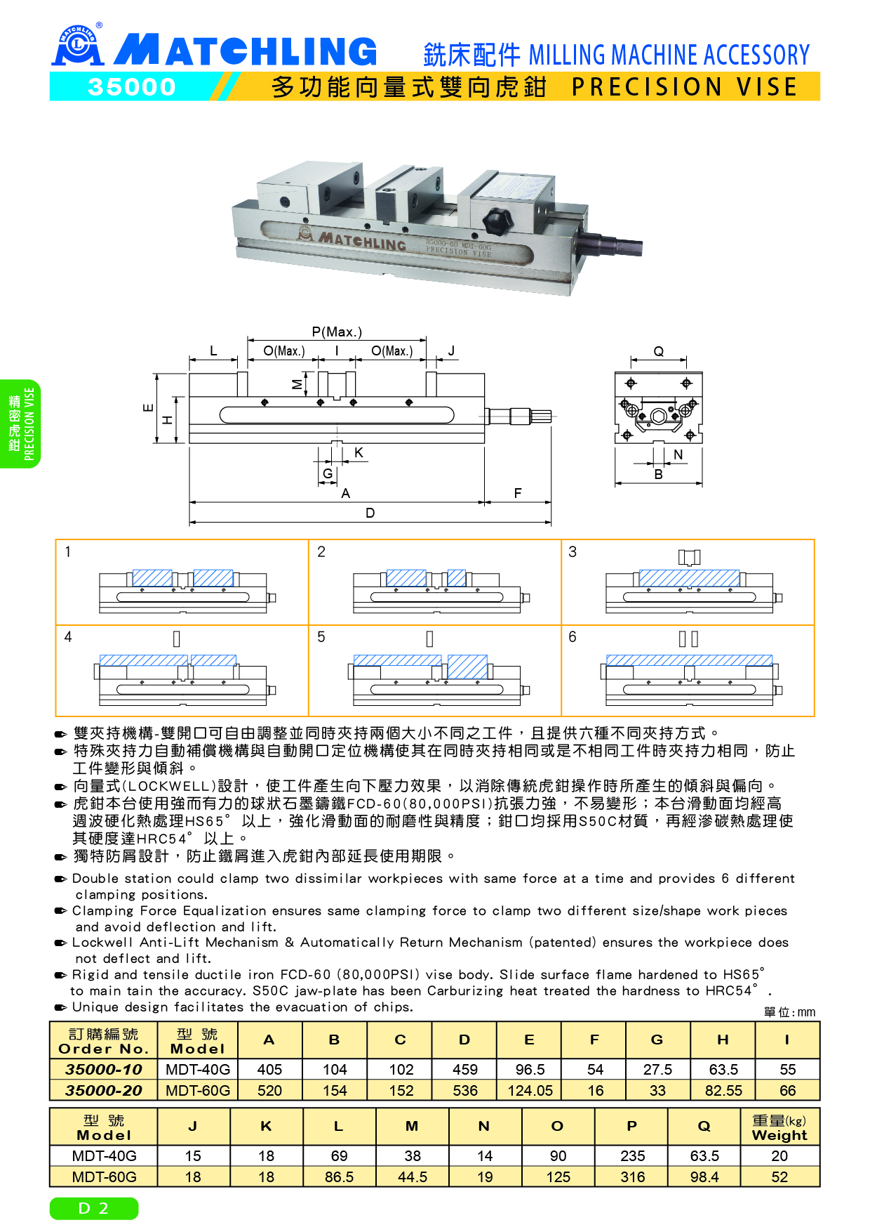 ● 雙夾持機構-雙開口可自由調整並同時夾持兩個大小不同之工件,且提供六種不同夾持方式。
