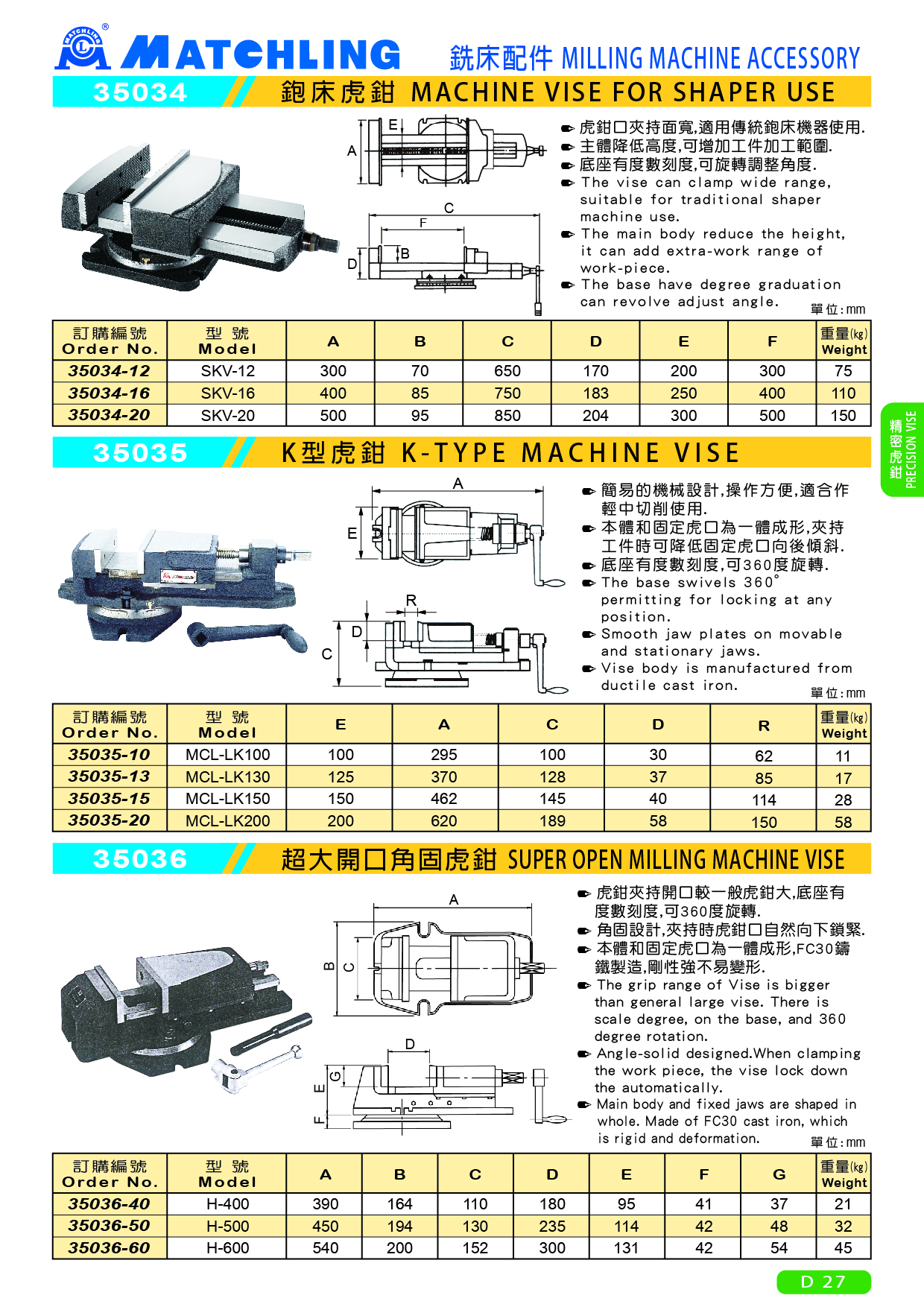 虎鉗口夾持面寬,適用傳統鉋床機器使用.
