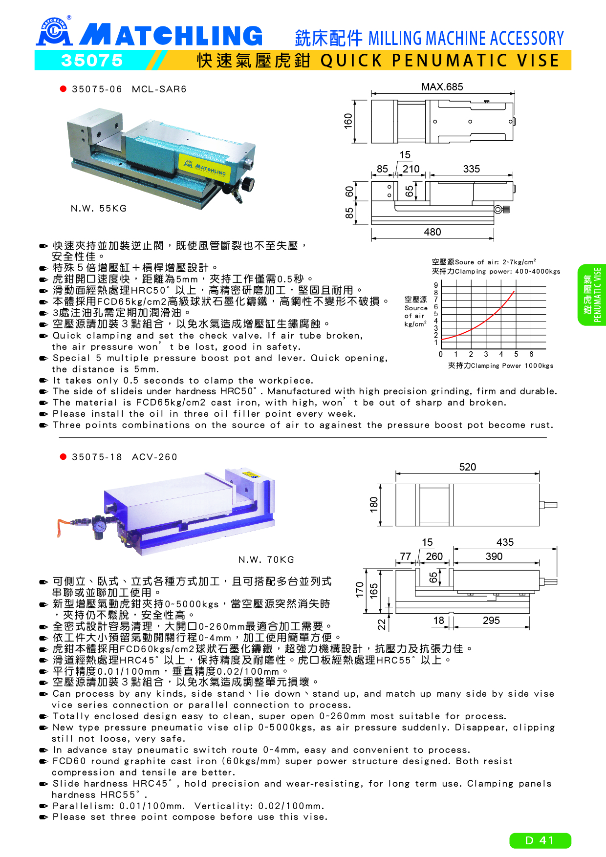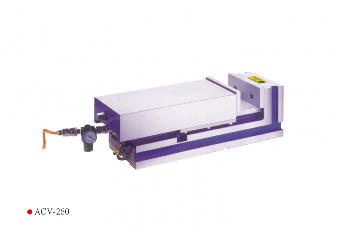 ● 新型增壓氣動虎鉗夾持0~5000kgs,當空壓源突然消失時,夾持仍不鬆脫,安全性高。