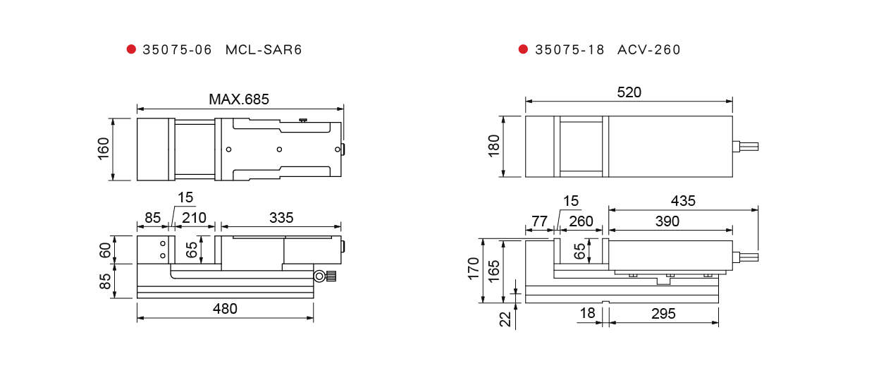 ● 滑道經熱處理HRC45˚ 以上,保持精度及耐磨性。虎口板經熱處理HRC55˚ 以上。