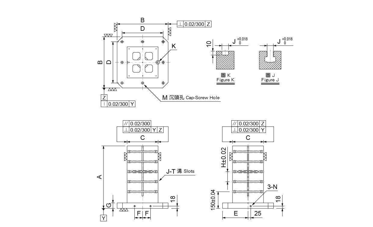 ● 以T型溝定位方式,利用標準化治具零件,可快速組立完成一套符合需要之治具。