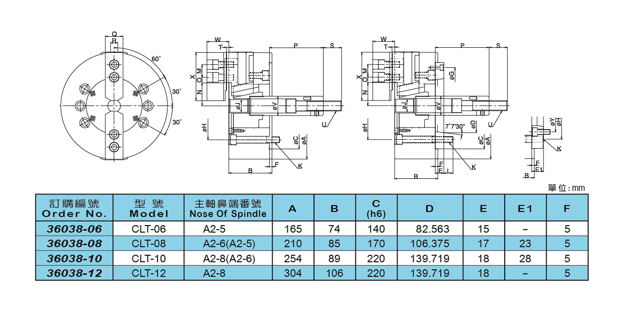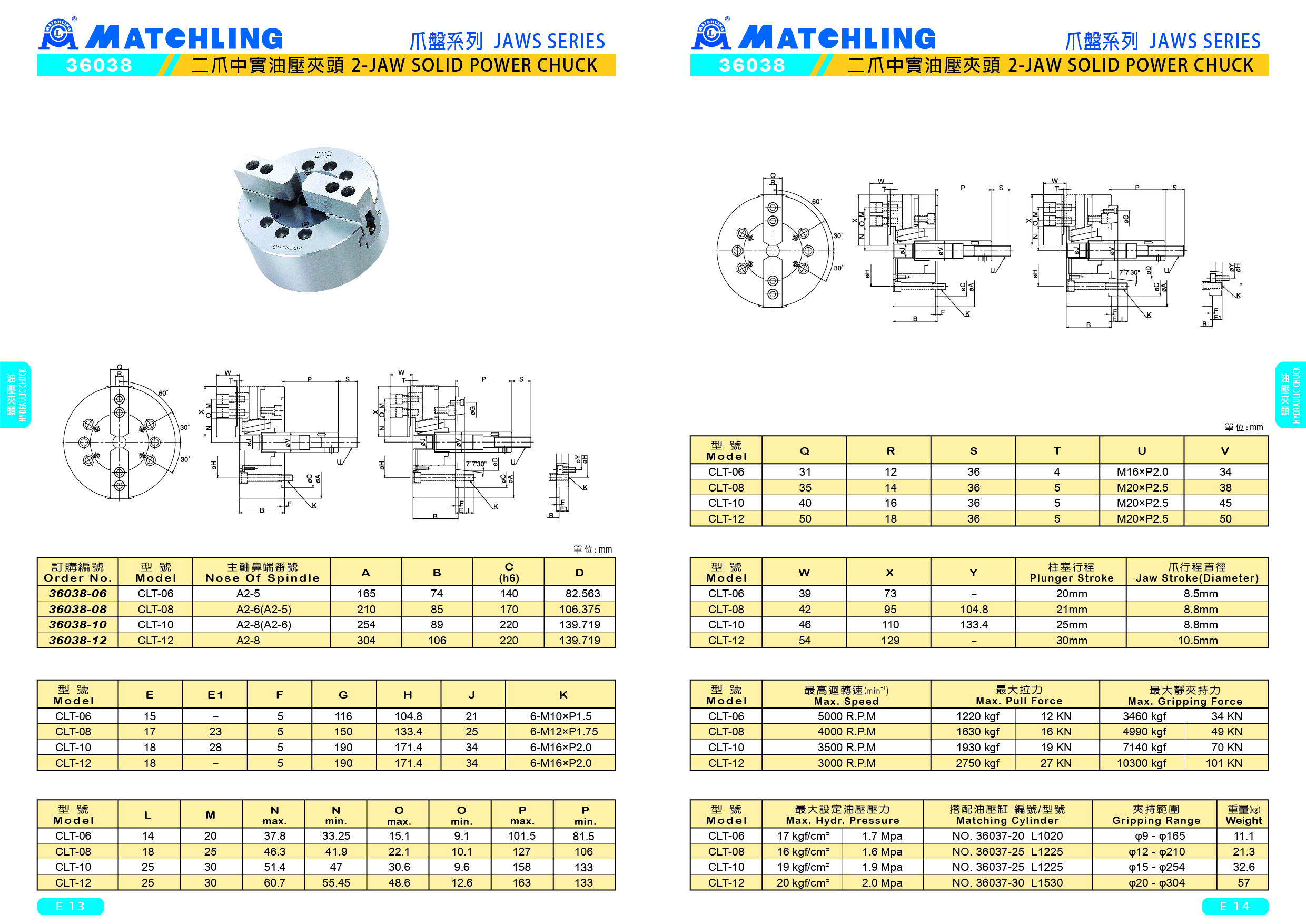 36038 二爪中實油壓夾頭