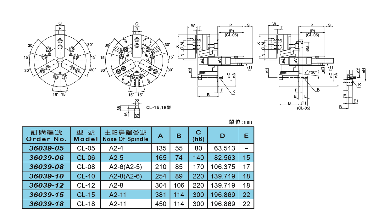 36039 三爪中實油壓夾頭