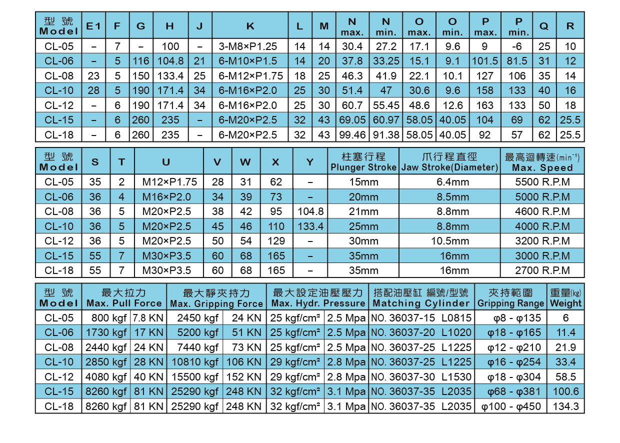 油壓夾頭 (三爪) / 油壓迴轉缸 / 氣壓夾頭 (二爪 / 三爪)