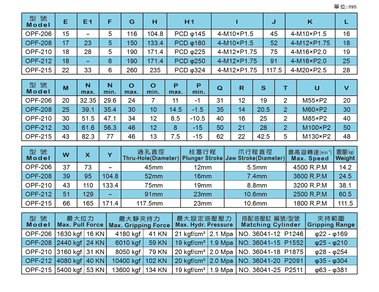 OPF-206 OPF-208 OPF-210 OPF-212 OPF-215