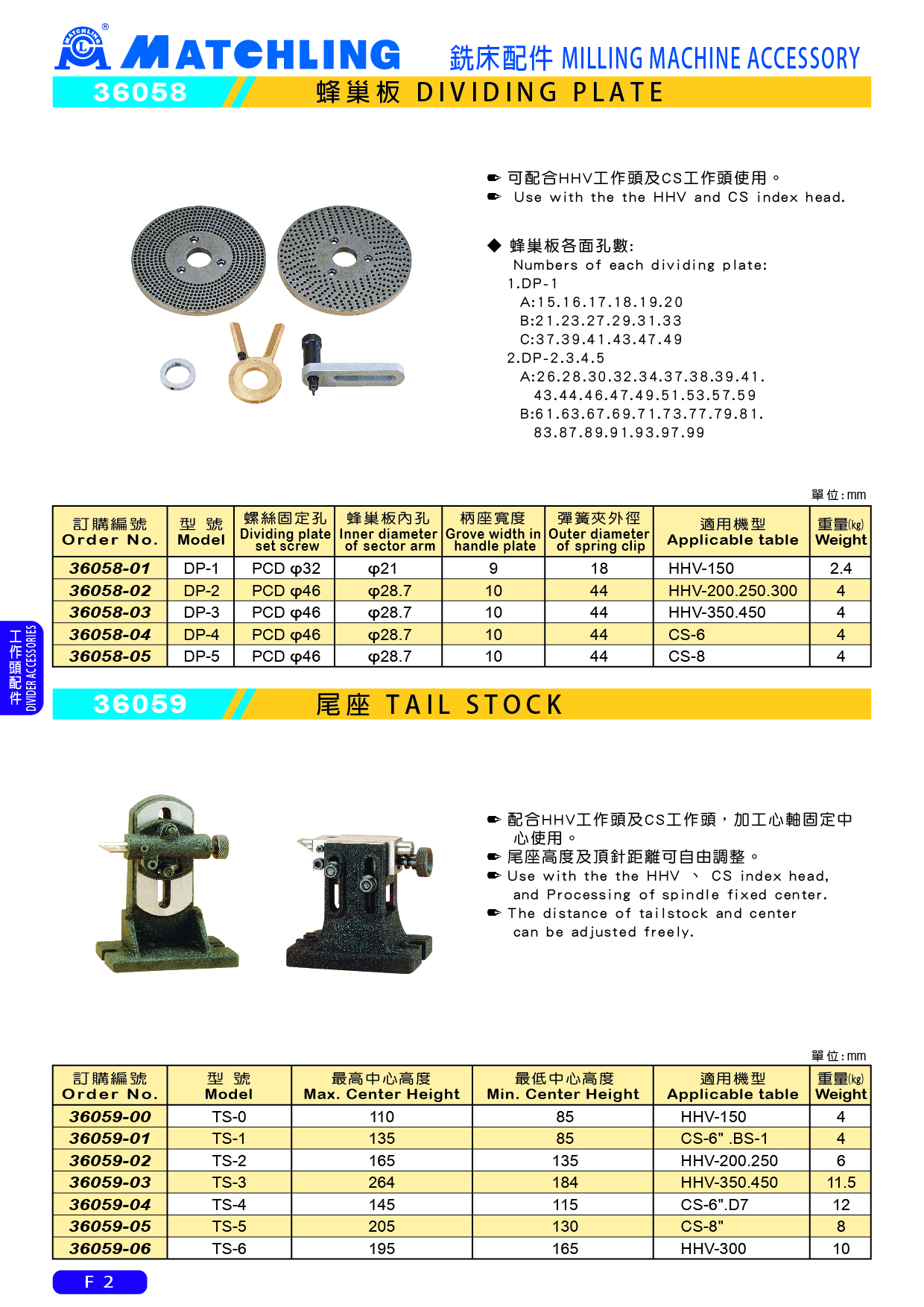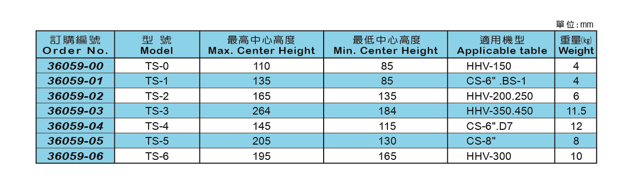 配合HHV工作頭及CS工作頭,加工心軸固定中心使用。