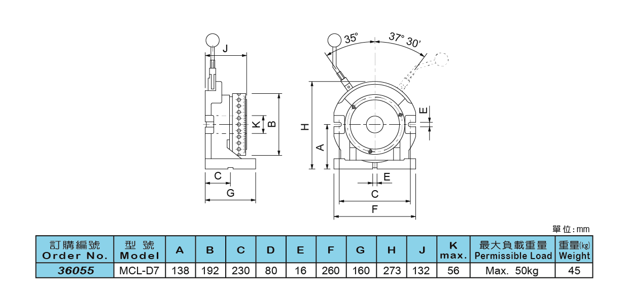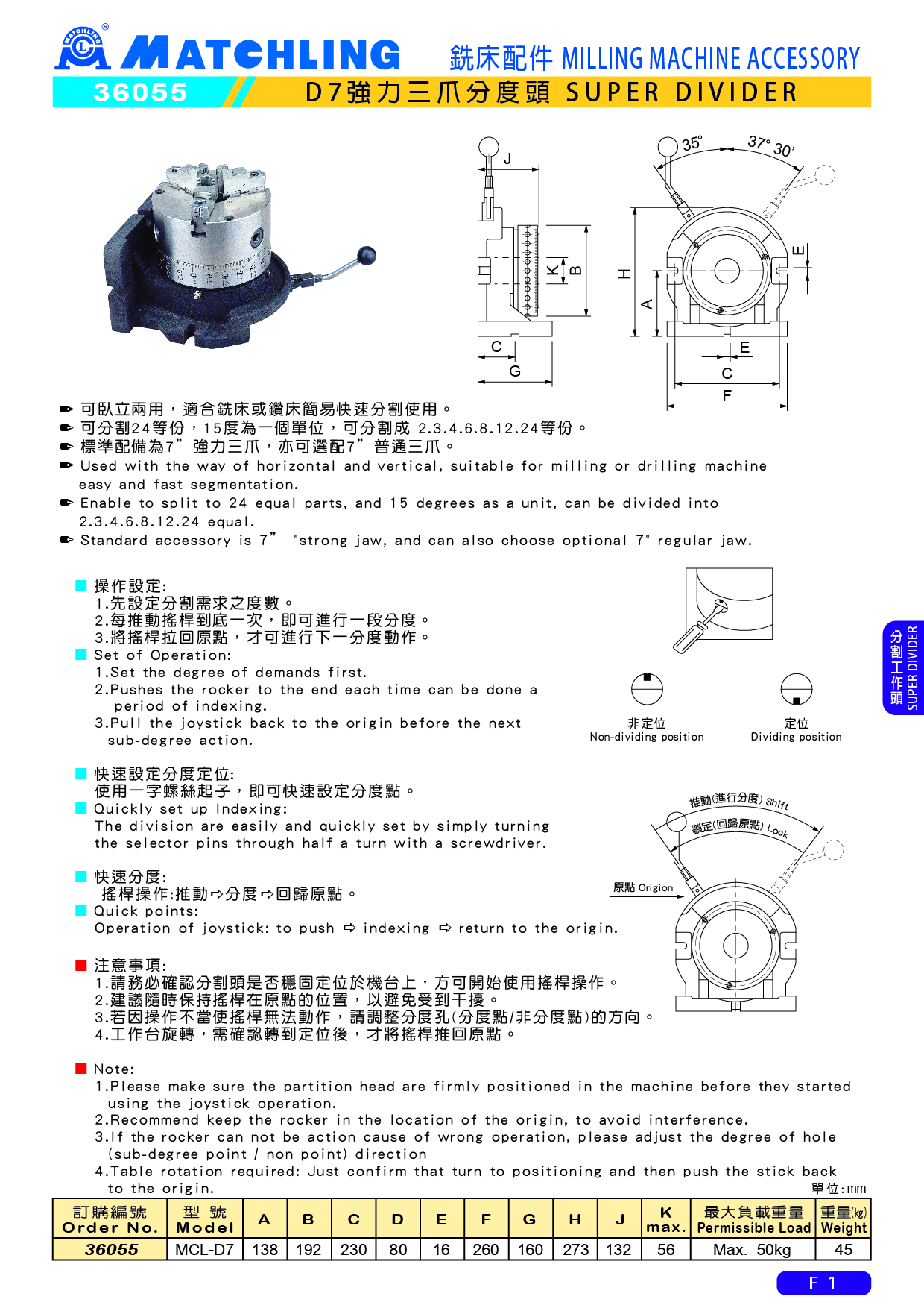 36055 D7強力三爪分度頭