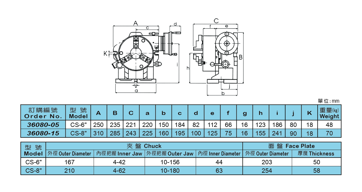● 快速定位分隔板可作2.3.4.6.8.12等份之快速分割。 ● 簡易定位為15度為一個單位(24等份),亦可加購蜂巢板作微量分度使用。 ● 可水平或垂直方向使用。 ◆ 特別配件: 1.蜂巢板 2.尾座
