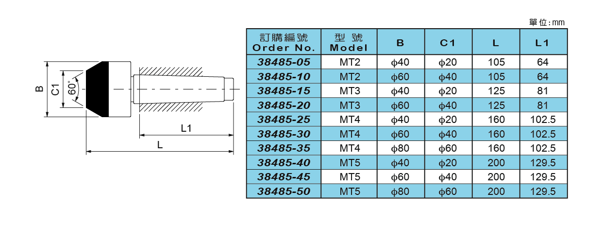 ● 前置大平面碳化鎢頂心。 ● 碳化鎢材質K20,硬度:HRC75˚±2˚。 ● 本體及碳化鎢頂心皆經過精密研磨。 ● 適用於車床及圓筒磨床機械。 ● 外徑錐度符合DIN 806規格。 MT2 MT3 MT4 MT5
