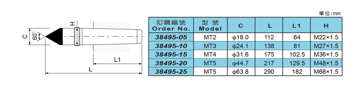 ● 前置全實心碳化鎢頂心。 ● 碳化鎢材質K20,硬度:HRC75˚±2˚。 ● 本體及碳化鎢頂心皆經過精密研磨。 ● 主體有螺紋,可搭配固定頂針螺帽使用。 ● 外徑錐度符合DIN 806規格。 MT2 MT3 MT4 MT5