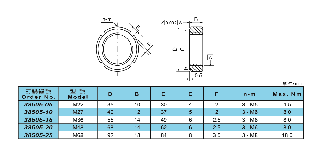 頂針螺帽符合DIN 807規格。