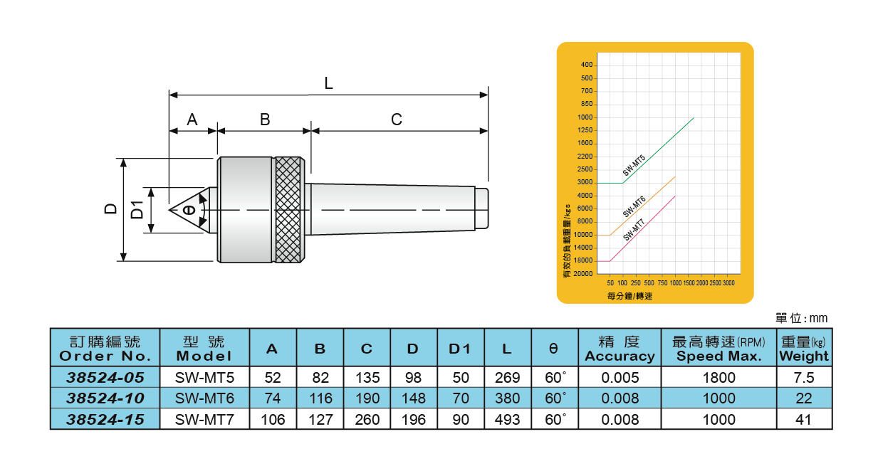 此頂針適用於重型車床及較重負荷載使用,具有防水性。