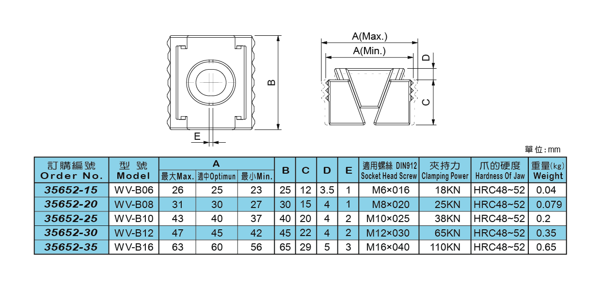 ● 適用於各種工件類型尺寸和材料在所有平台上夾緊的一系列組件。 ● 可夾持素材:鍛造品、塑膠射出、電子零件..等材料,用在臥式、立式、多軸銑床加工。 ● 夾具體積精巧,佔用空間小,可使治具盤上能擺放更多加工物件,提升工作效率。