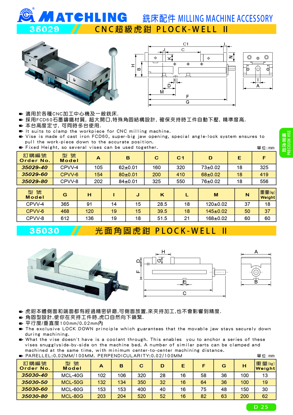 ● 採用FCD60石墨鑄鐵材質, 超大開口,特殊角固結構設計, 確保夾持時工件自動下壓, 精準度高.