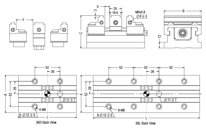 | Order NO. | Model | A | B | C | L | E | F | Force | Vise Accembly |