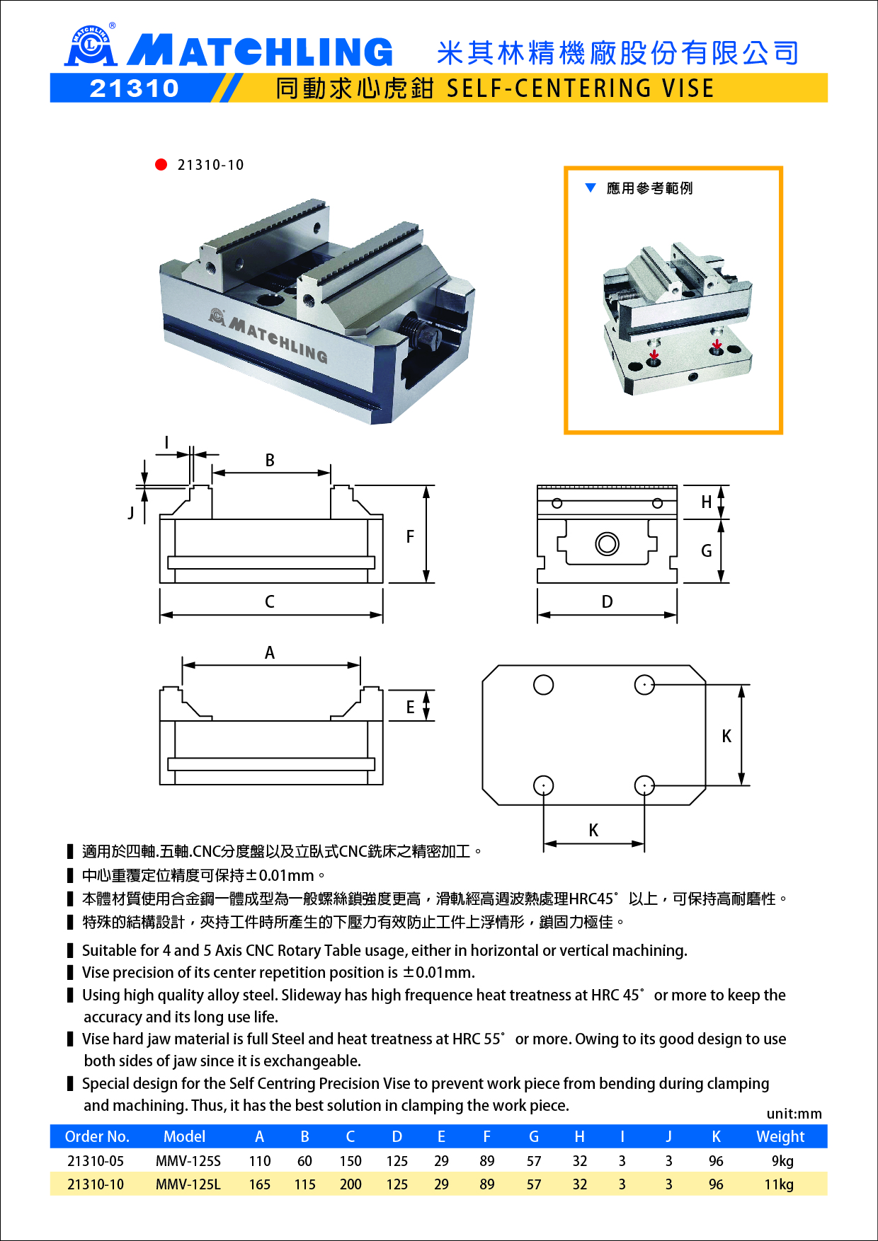 ▍特殊的結構設計,夾持工件時所產生的下壓力有效防止工件上浮情形,鎖固力極佳。
